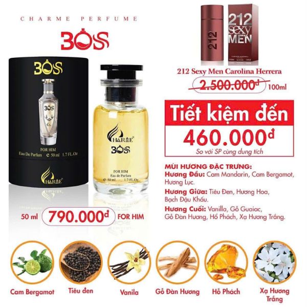 Charme Boss 50ml được sản xuất giống mùi (theo tone mùi) nước hoa 212 Sexy Men Carolina Herrera.